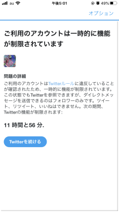 問題のあるツイートを削除した上で12時間使用不可になるロック